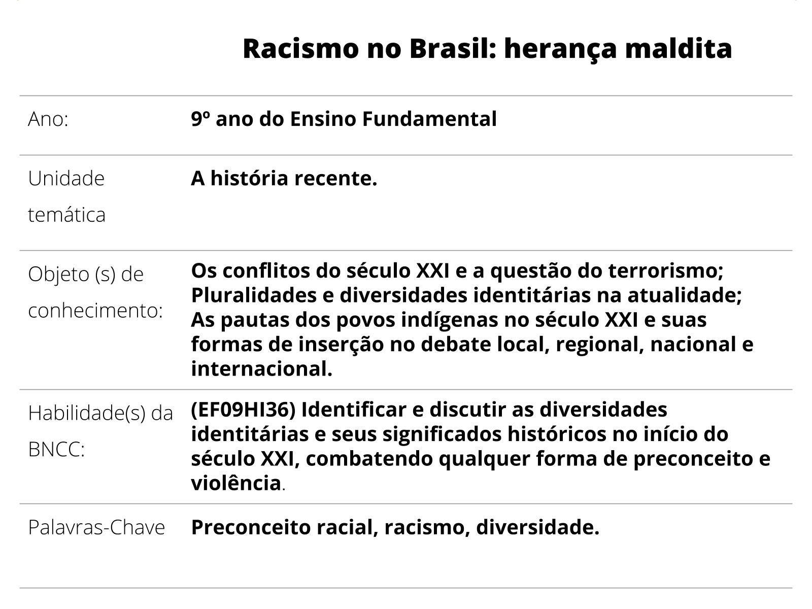 Plano De Aula 9º Ano Racismo No Brasil Heranca Maldita